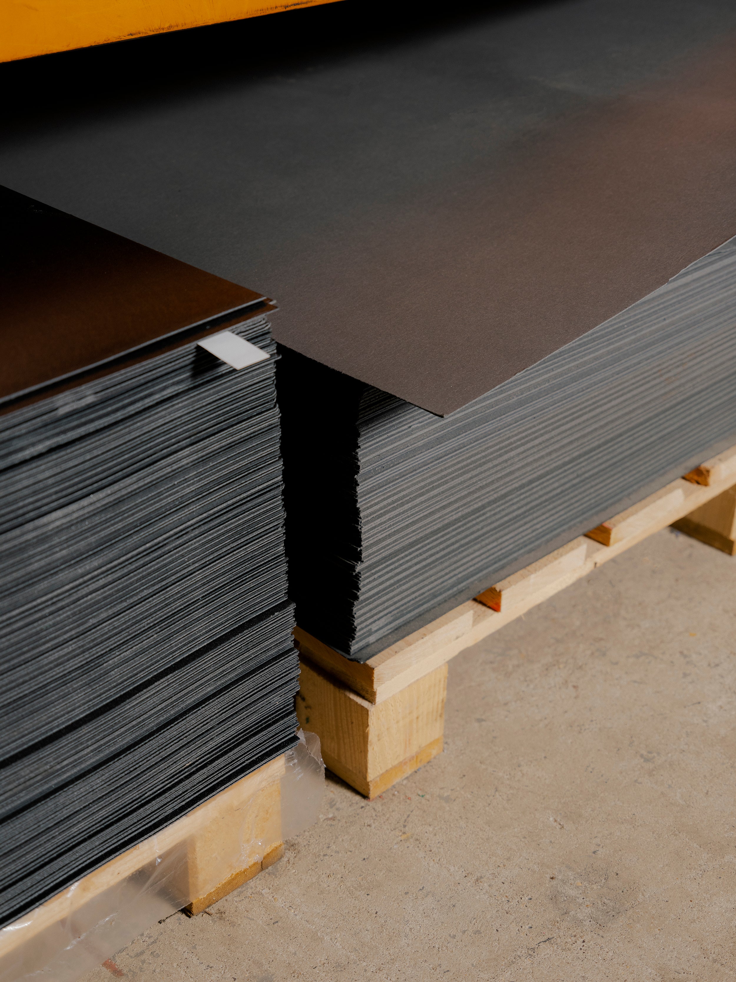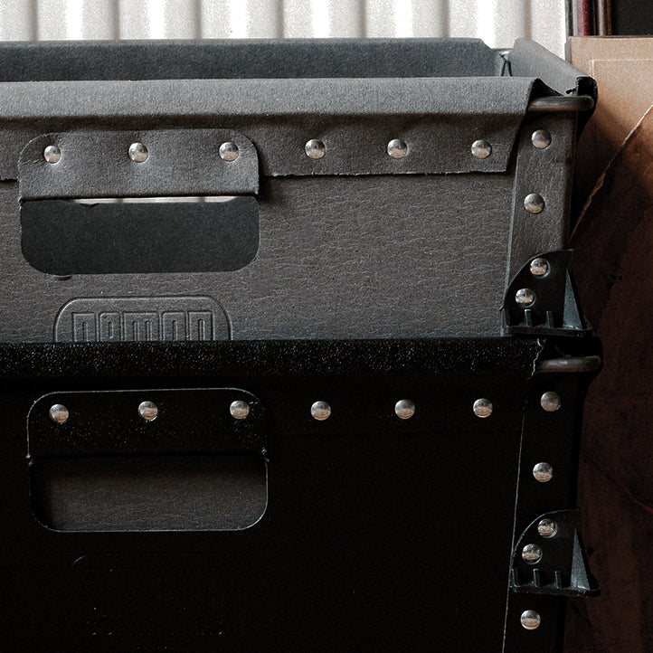 Constructed from recycled card, paper, and wood fibres, fibreboard sheets are known for their efficiency, eco-friendly nature, and durability, all while being lightweight. As they age, each container gains a distinctive finish and natural character picked up through everyday use