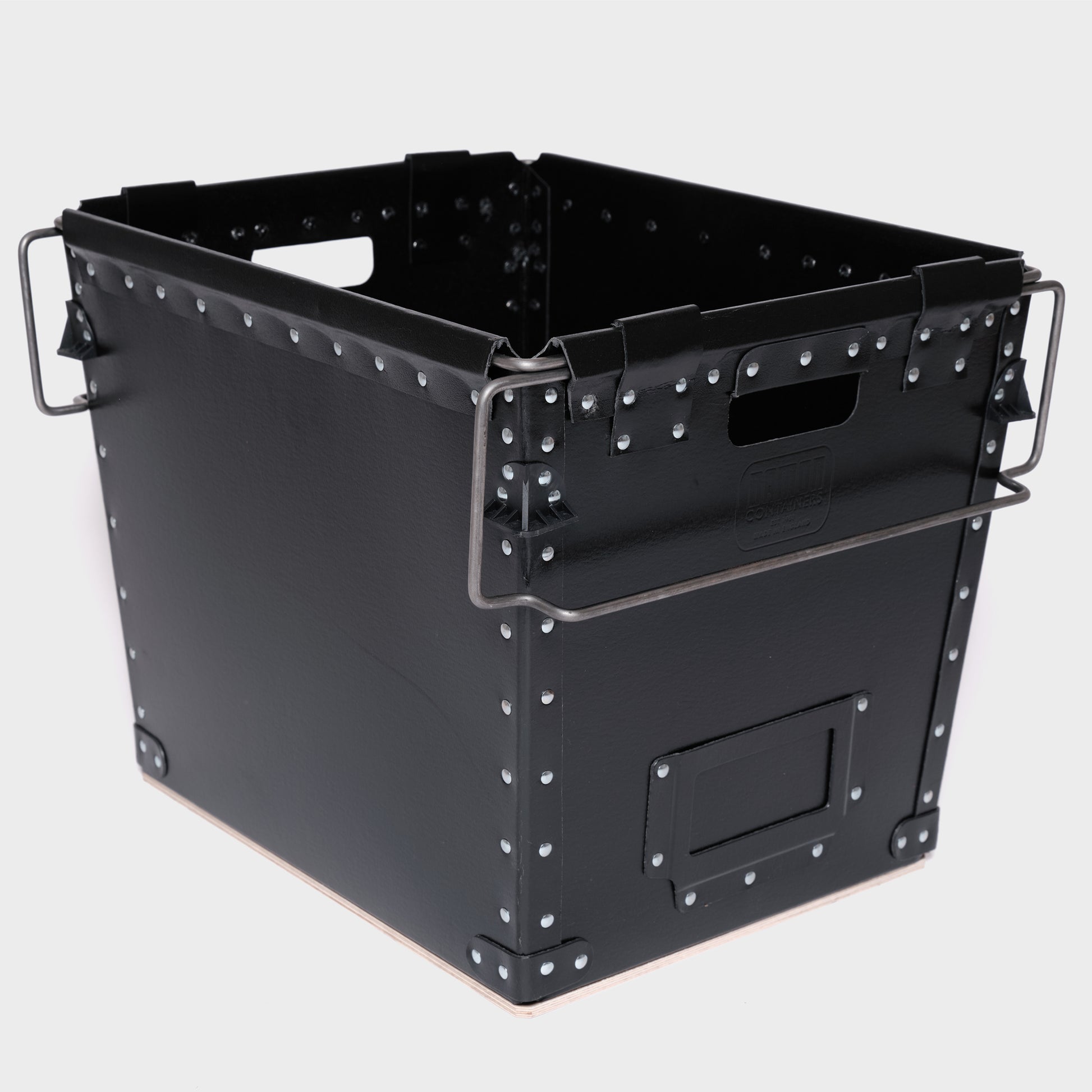 Constructed from recycled card, paper, and wood fibres, fibreboard sheets are known for their efficiency, eco-friendly nature, and durability, all while being lightweight. As they age, each container gains a distinctive finish and natural character picked up through everyday use